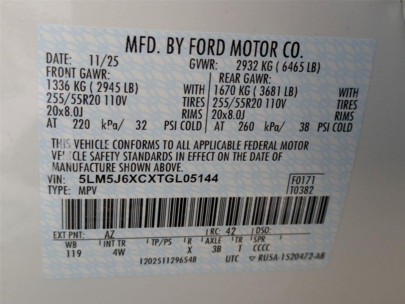 - Front Tire Size: P255/55HR20