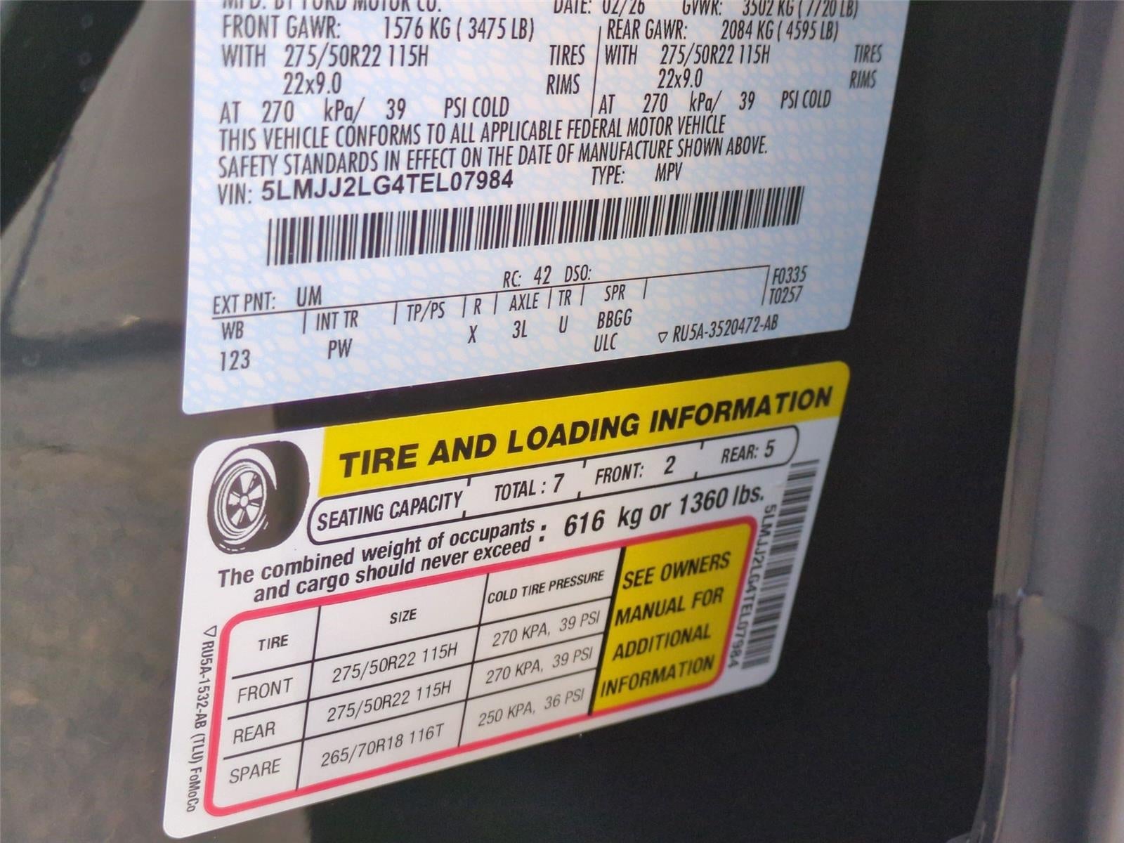 - Front Tire Size: P275/50HR22